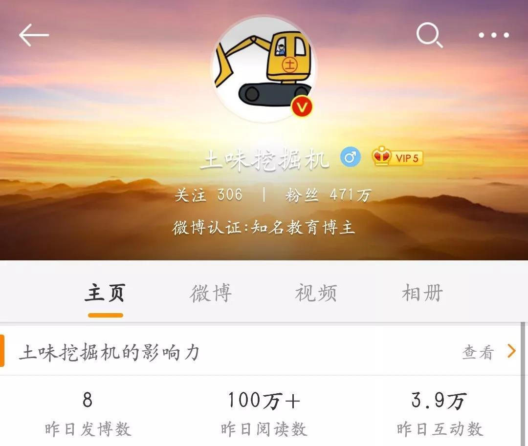微博大V“土味挖掘机”凭借转发和调侃土味视频,吸引了大量粉丝。