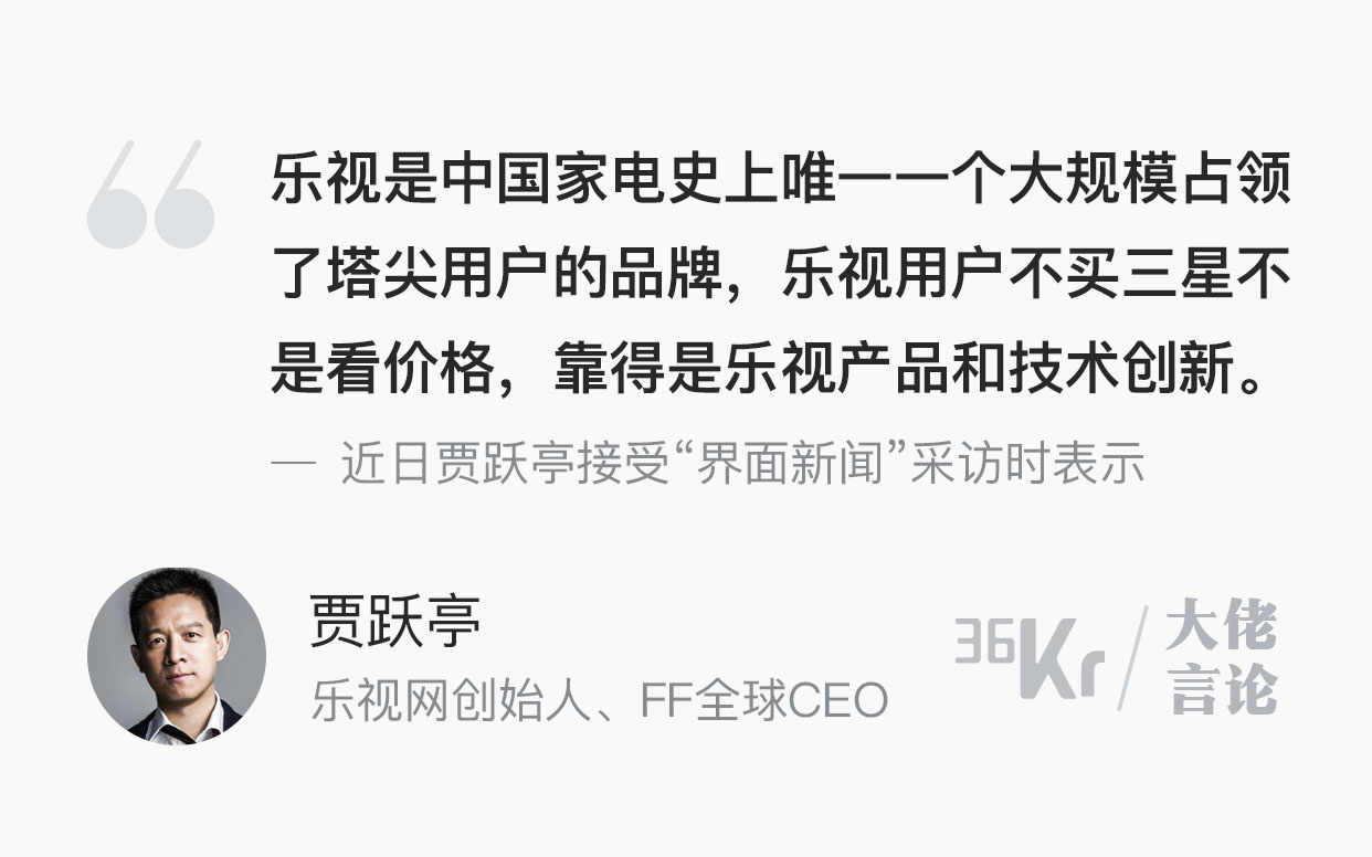 大佬言论 | 贾跃亭:乐视的高端路线成功过,FF的打法也一样