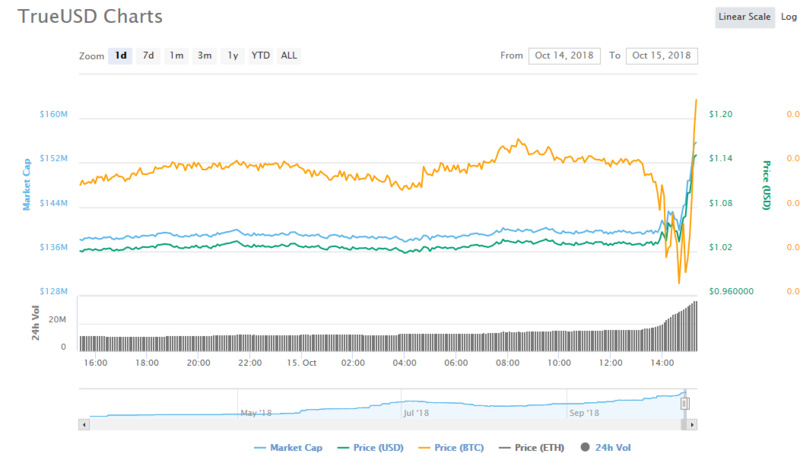 但是,USDT 今日持续下跌的同时,其他稳定币则出现不同程度的上涨,Coinmarketcap 行情显示,TUSD 现报 1.15 美元,24 小时涨 12.65%;PAX 现报 1.08 美元,24 小时涨近 7%。Bibox 行情显示,GUSD/USDT 24 小时涨 10.49%,现报 1.13 美元。