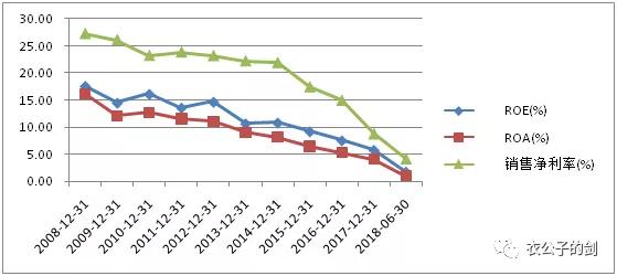 其次,ROE、ROA、销售净利率的指标连年下滑的趋势没有得到遏制,反而变本加厉。