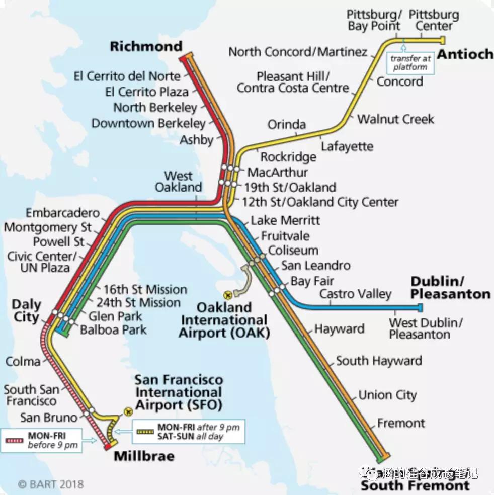 湾区的地铁系统叫做BART(Bay Area Rapid Transit),从旧金山市中心蔓延到整个湾区。虽然往返一趟,就要花掉接近15美金,但作为市政福利,跟北京地铁一样,他一直号称在亏本运行。