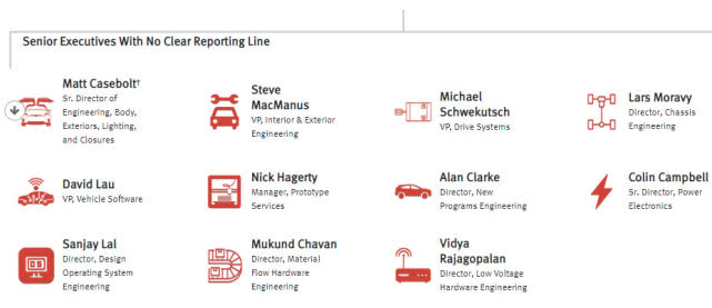 今年有6个高管离开了公司,其中包括销售、人力资源、通信、微芯片开发、IT主管,以及制造团队负责人Doug Field。取代他们位置的是之前他们的下属或者公司内部的其他人。