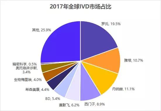 体外诊断作为全球医疗器械领域最大的细分市场,多年来稳居头把交椅。目前80%临床诊断信息都来自于体外诊断,相比之下其费用占医疗费用的比例不到20%。随着新技术的不断发展,体外诊断行业规模不断扩大,各个细分市场显现出不同的竞争格局。