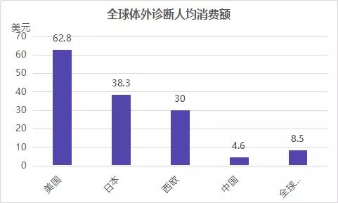 我国人口占全球总人口比例约20%,但体外诊断市场占全球市场比例小于5%。根据中国产业信息网统计,我国体外诊断产品人均消费额为4.6美元,低于全球8.5美元平均水平。
