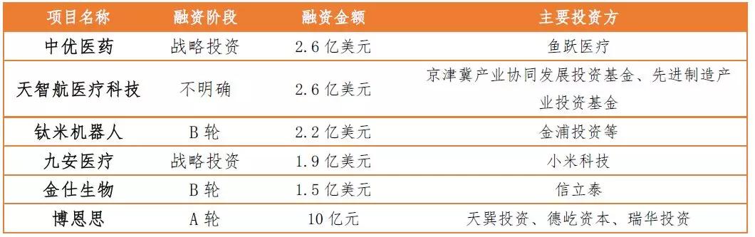 表4 1-9月医疗器械领域融资过10亿元案例