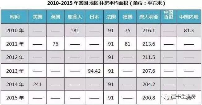 数据来源:法国:法国国家统计局;加拿大:http://shrinkthatfootprint.com/;德国:德国经济周刊;日本:日本国土交通省;美国:US.Census Bureau 2014;香港:www.hongkongfp.com;英国:BBC新闻;澳大利亚:澳洲统计局;中国内地:中国国家统计局六普数据、链家研究院估算,不包括房改以前单位分配的公房和小产权房
