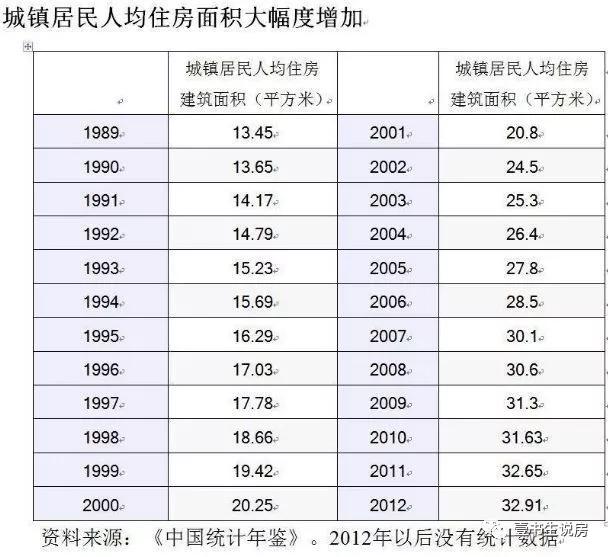 1.人均住房面积:在中国的历史上早期这一统计为人均居住面积的统计,因为那时大量的住房为非成套住房,没有厨房、厕所的面积,更没有楼房中分摊的地下室、电梯、楼梯等面积,因此只计算居住面积。1949年城镇人均居住面积为4.5平方米,1978年城镇人均居住面积为3.5平方米。