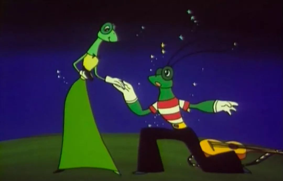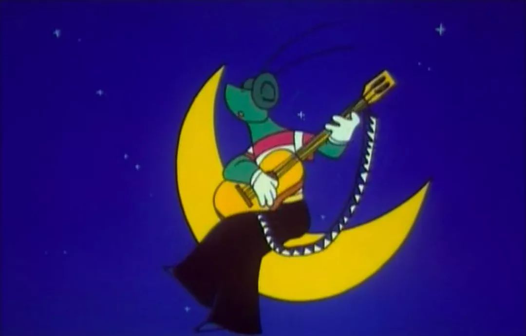 在1984年出品,被很多80、90后称为“童年阴影”的《黑猫警长》第4集中,身穿粗条纹T恤,下身搭配喇叭裤,抱着一把吉他唱情歌的螳螂青年,俨然就是上世纪80年代摇滚青年的真实写照。