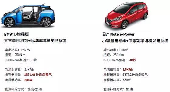我们选择日产Note e-Power和宝马i3增程版做简要分析。