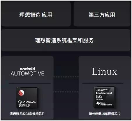理想智造ONE,选择了Linux和Android Automotive的双OS结构。与Linux配合的是一款德州仪器J6车规芯片,这个系统主要负责仪表和车辆控制。并与车载娱乐系统形成了物理上的隔绝,再通过HDMI和USB进行通讯。