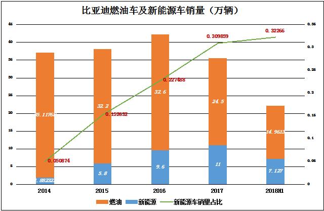 2014年以来,比亚迪燃油车销量在30万辆一线徘徊不前。2017年破位下行,预计2018年最好的结果不过是回到30万辆以上。但正如上文所说,比亚迪已经不是传统汽车企业,不应以燃油车销量多寡判定业绩优劣。