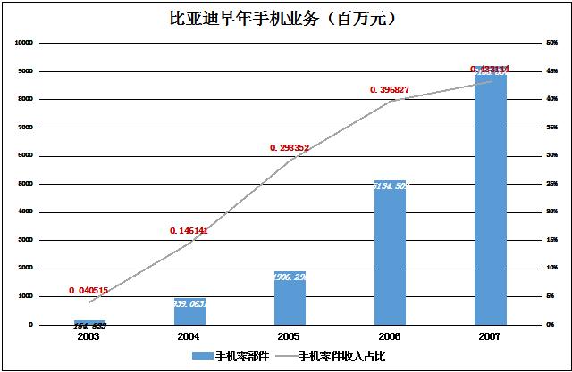 2003年起,比亚迪就开始招兵买马,陆续推出屏幕、镜头模块、键盘机壳模具、软性电路板等产品,几乎覆盖所有的手机零组件,进而“顺理成章”地开展手机组装业务。