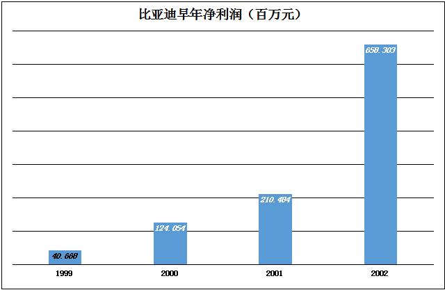 由于锂离子电池附加量更高,比亚迪效益全面改观,2002年毛利润率、净利润率分别达到41.7%和28.7%,成为劳动密集型企业中的“奇葩”。适逢手机产业大爆发,锂离子电池需求“井喷”,比亚迪崛起有运气的成份。但是能拿到40%以上的毛利润率,说明比亚迪在电池在技术方面“有一套”。