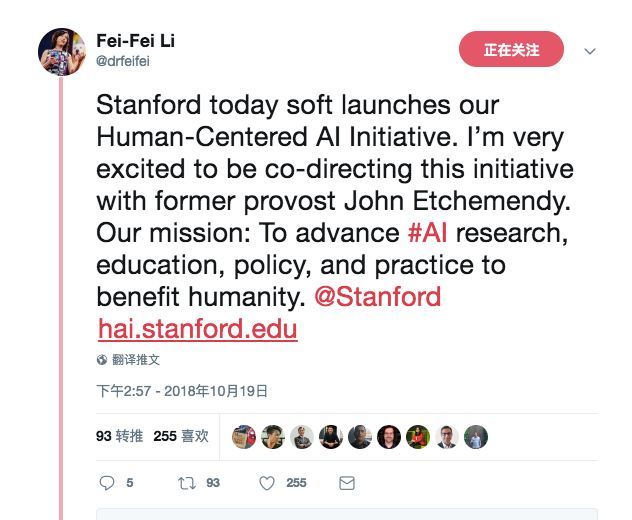 刚刚,李飞飞宣布斯坦福开启「以人为中心的 AI 计划」(Human-Centered AI Initiative,HAI),该项目由李飞飞和斯坦福大学前教务长 John Etchemendy 共同主导,Chris Manning 也参与其中。李飞飞在 twitter 上表示该项目的愿景是:推进 AI 研究、教育、政策和实践,以惠及全人类。