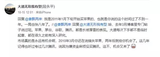 上图来源:雪球,图中用户ID:大道无形我有型为段永平账号