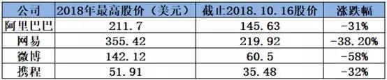 但实际上中概互联网公司都在今年经历了不小的调整,阿里巴巴在今年以来距离最高价跌幅达31%,网易和携程跌幅达到38.2%和32%,微博更是达到了58%的惊人跌幅。