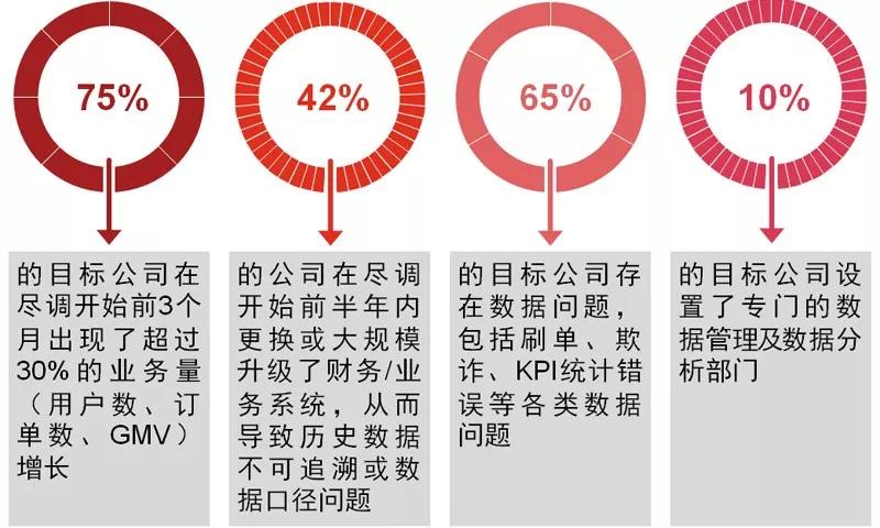 不幸的是,纵观国内外各大新闻网站,因为企业数据问题被曝光而对企业形象带来巨大影响的新闻不绝于耳;而互联网行业由于其本身的业务特点,成为了数据质量问题的“重灾区”。基于普华永道对过去3年相关行业尽职调查项目情况所做的统计,有65%以上的目标公司在业绩统计指标方面存在问题。