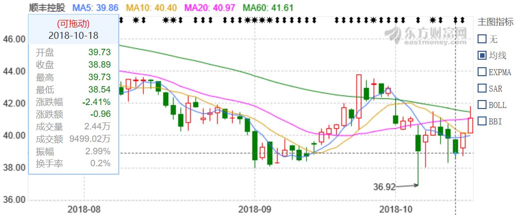 京东物流宣布开放物流当天,顺丰的股价下跌了2.41%