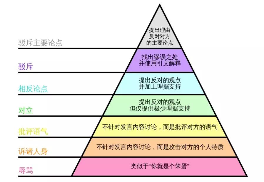 硅谷创业之父 Paul Graham,在一篇文章 How to disagree 中,提出过一个经典的「反驳金字塔」(Hierarchy of Disagree):