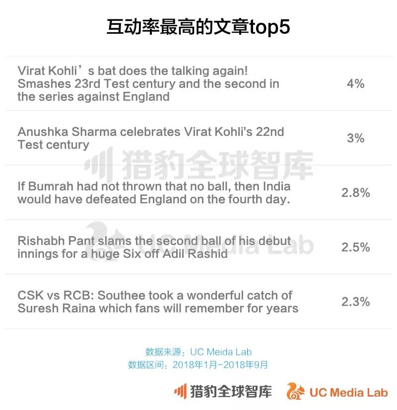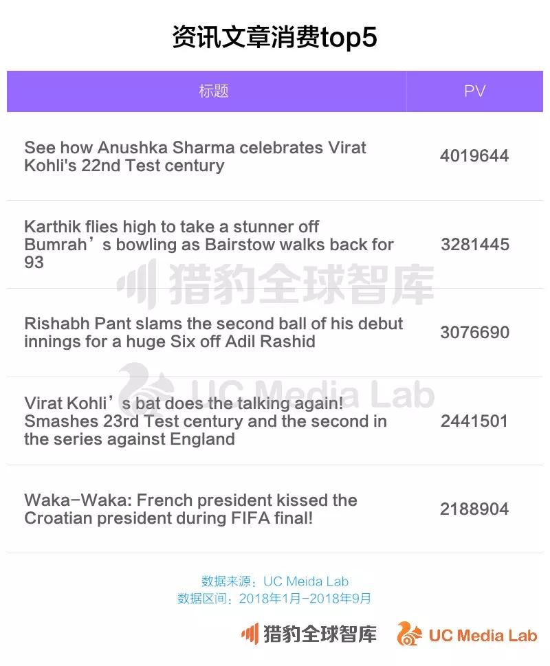 根据UC国际信息流内提供的数据,印度人在线看新闻资讯仍旧以板球的资讯为主。