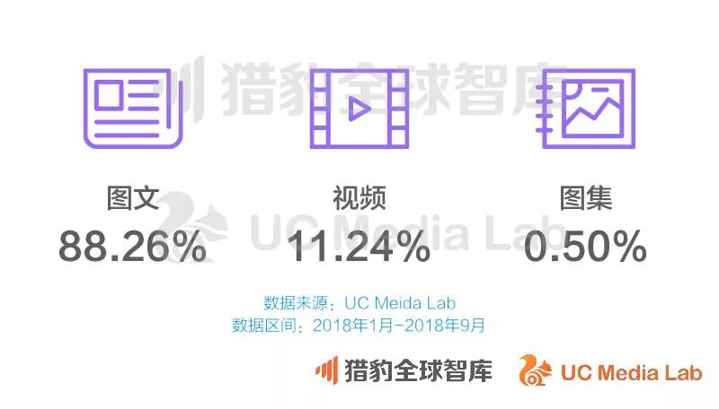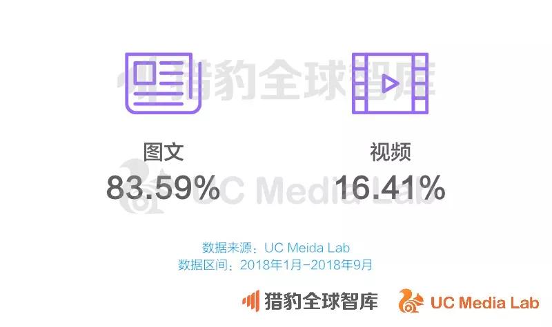 从消费来看,图文也依旧是UC 端内消费的重要部分,整体消费占比达83.95%;视频消费占到16.41%。