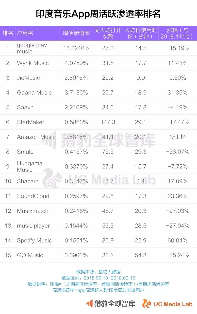 从猎豹大数据的榜单中可以看出,这些有国际巨头投资背景、而且拥有更多当地语言的音乐应用用户增长迅速。