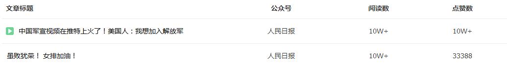 “中国军宣视频在推特上火了!美国人:我想加入解放军”、“虽败犹荣! 女排加油!”,这两条内容一旦用户被用户传播,就会被贴上爱国、荣誉这样的标签,显然是用户极为喜欢的。