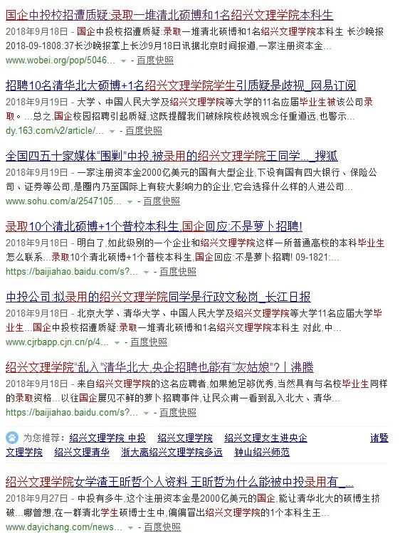 三是要把握先机,可以分为两类,切入点的先机和事件的先机,找到和别人不一样的切入点,比如当初一篇《绍兴文理学院“乱入”清华北大,央企招聘也能有“灰姑娘”?》,很多媒体的切入点引发的都是大众质疑、惊奇的情绪正义感,但有一篇文章的切入点,却是从绍兴出过很多名人、英雄不问出处为切入点,引起大众的正义感,毕竟很多人并非出自名校,或者出自一线城市,这一下子引起了很大的转发量。又或者你能比别人先一步获知事件,在第一时间传播。