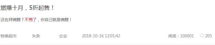 直接利益型的运用,需要注意的是:要有主题热点。比如“锦鲤”、“双十一”,有用户说过,没有无缘无故的福利,新媒体每一个行动的背后都会有目的,他们不想踩坑!