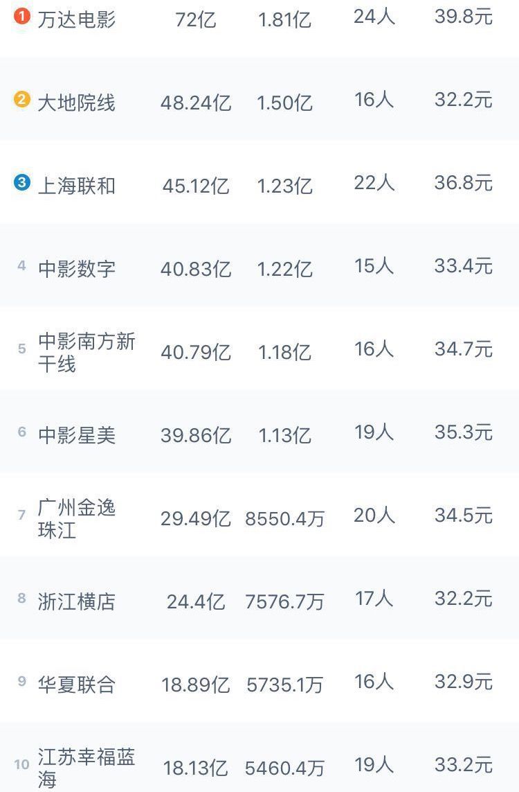 和万达一样,全国多地开花的大地院线也收益不错,但相对更多强调地域的院线则要多少落后一点点。