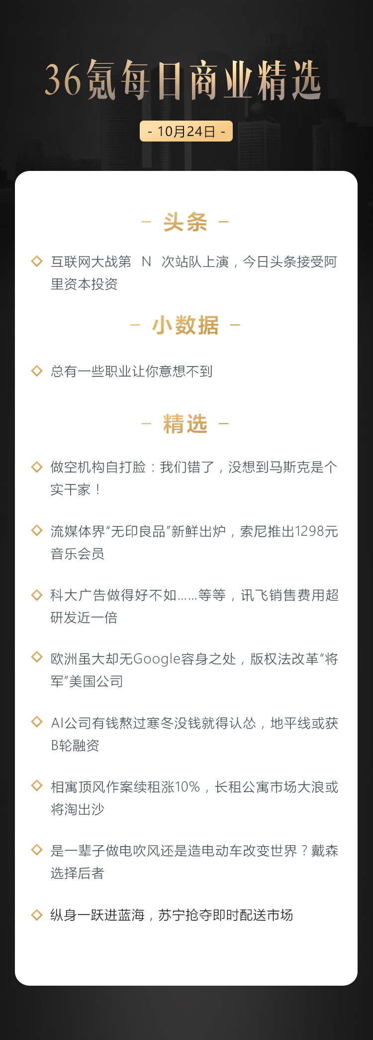 本文来自36氪付费栏目《36氪每日商业精选》——10月24日