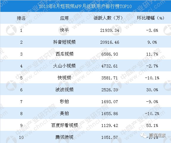 根据今年8月中商产业研究院《2018-2023年中国短视频市场前景及投资机会研究报告》显示,快手的活跃用户数为2.1亿人,位列第一。“快手的大部分用户来自二线以下城市,最高学历低于高中。”快手合伙人、首席内容执行官增光明曾在今年初公开表示。