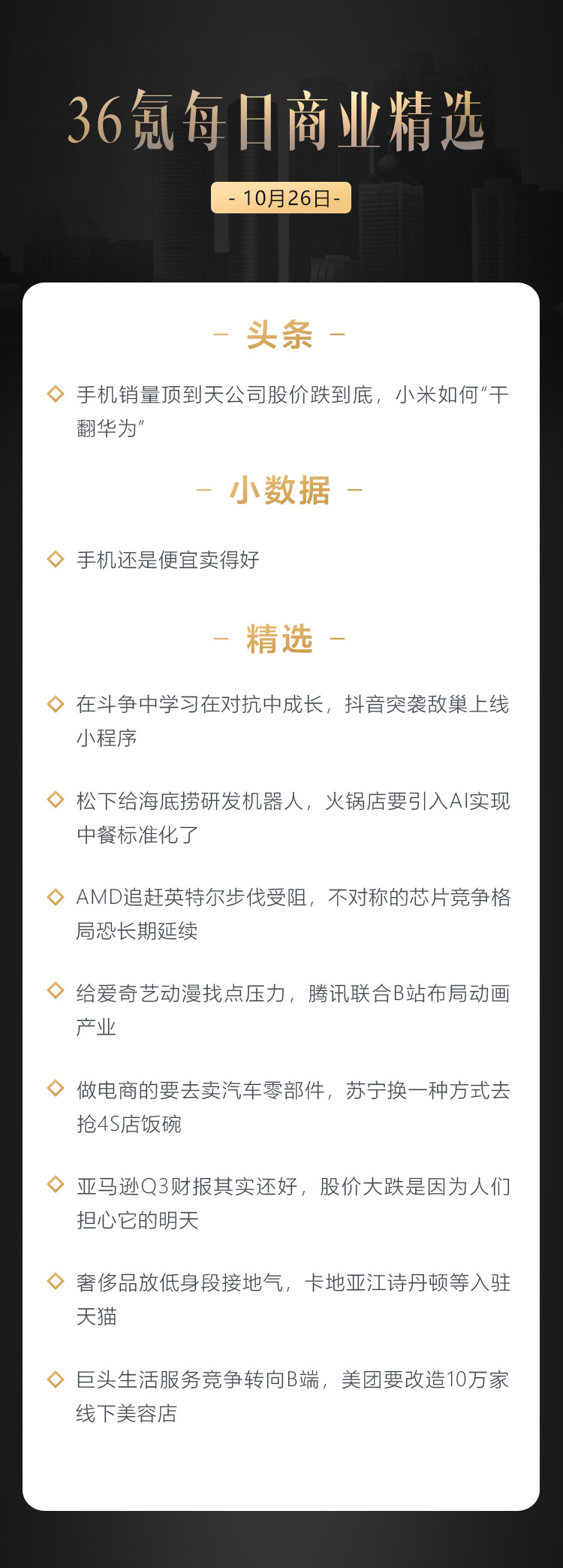 本文来自36氪付费栏目《36氪每日商业精选》——10月26日