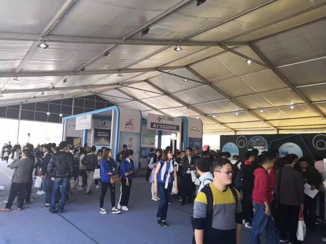 而今年,年龄大到陪家人来看机器人产品的奶奶,小到被工程师父亲带到现场看热闹的 7 岁男孩,还有大批报名来参会的在校大学生,参加 AI 比赛的外国代表团,以及在积极派发传单的年轻 AI 技术公司,至少证明了科大讯飞还在扩散中的影响力。