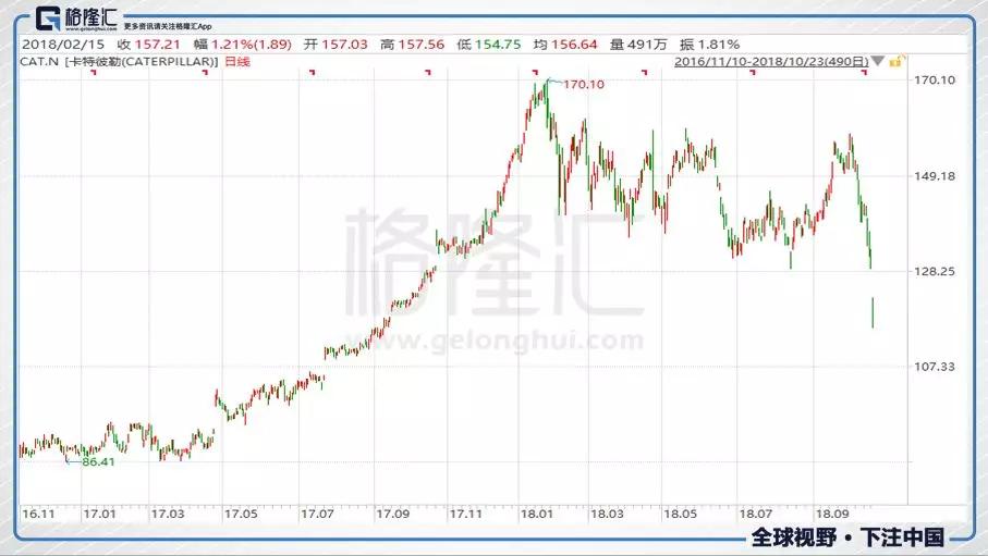 前天晚上美国的制造业巨头卡特彼勒发布三季度业绩,Q3业绩很好,但是给了悲观指引,结果股价扑街了7个多点。另外还有3M公司也是业绩不及预期,跌了4个多点。