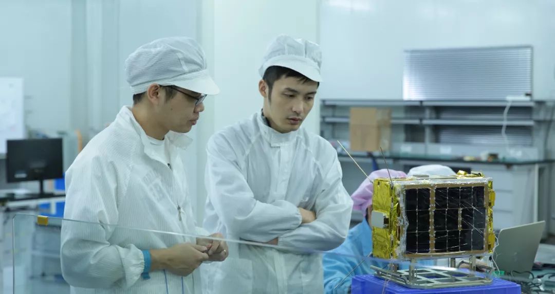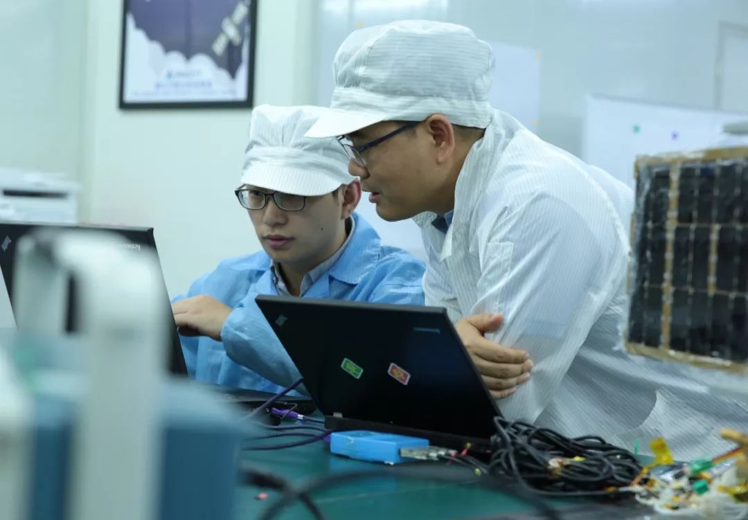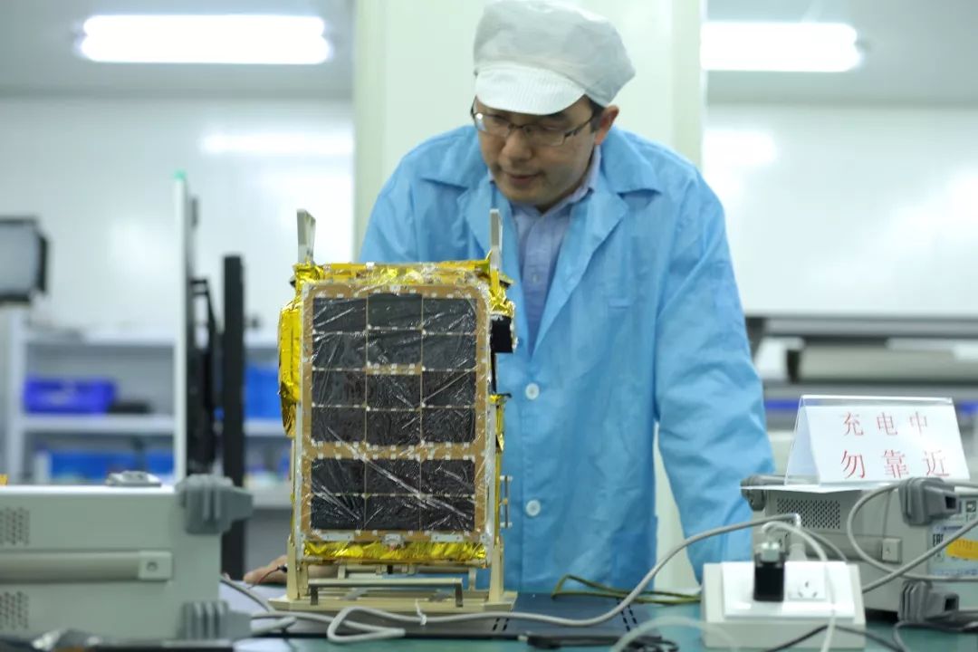 图为天仪研究院CEO杨峰为卫星做例行测试