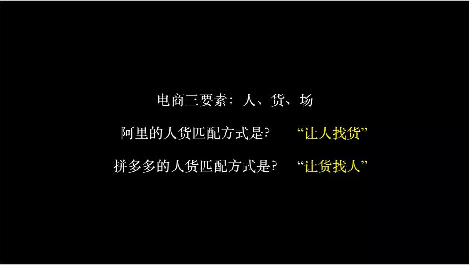 人和货里,人更重要。拼多多人、货匹配的方式是货找人,人是核心。