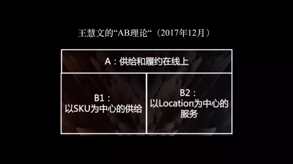 2、纵着一刀,B1是以SKU(最少单位产品)为中心的供给,换句话说是实物电商。B2是以location(位量)为中心的服务,换句话说是生活服务电商。