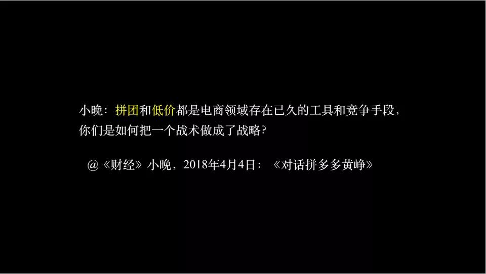 小晚又问他,拼团和低价都是电商领域里旧有的工具,你是如何把战术变成战略的?