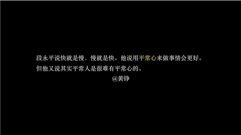 段永平说,快就是慢,慢就是快,用平常心做事情会更好。但是又说其实平常人很难有平常心。
