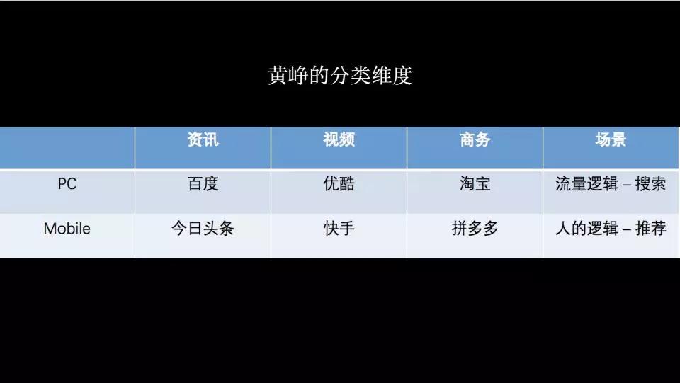 黄峥的分类维度和王兴非常不同。