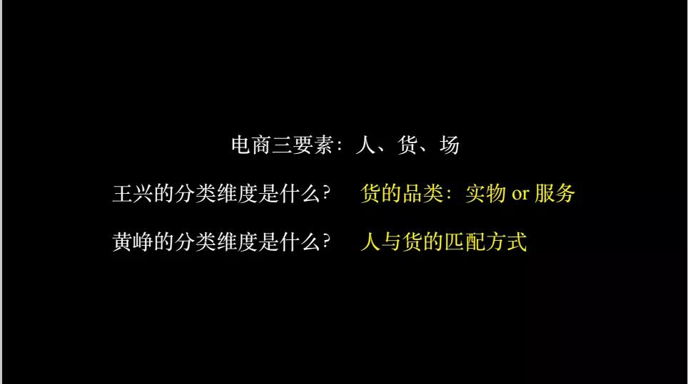 所以,王兴看的是货的分类,而黄铮看的是货和人之间的匹配方式发生了变化。