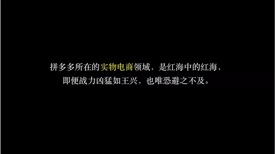 拼多多所在的电商领域叫实物电商。这个领域是电商里面,红海中的红海,即使战力凶猛如王兴,也唯恐避之不及。