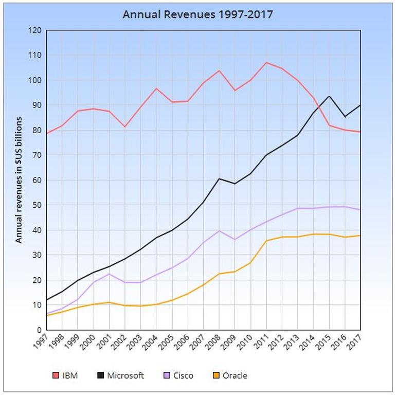 首先,IBM已经在很长的一段时间内萎靡不振了:去年的收入是1997年以来最低的;而且,正如ZDNet的一篇中文章所指出的,1997年的790亿美元是现在的1200亿美元。