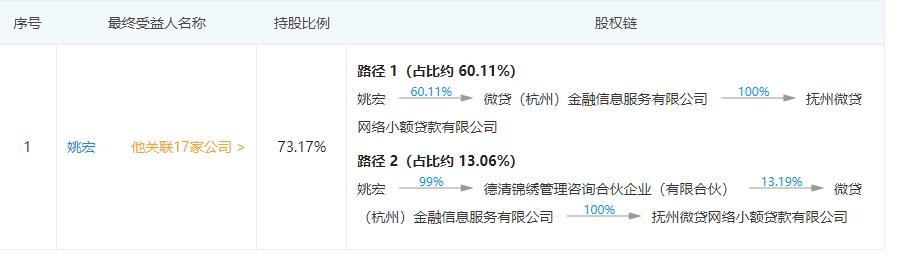 企查查信息显示,抚州微贷网络小额贷款有限公司由微贷网全资控股。