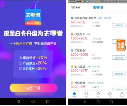 图片来源:现金白卡官微及去哪借首页