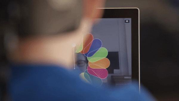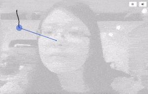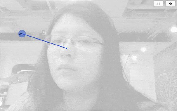 此时,你脸的朝向就是屏幕上画笔的位置,慢慢移动自己的脑袋,微微转头,就可以在屏幕上勾勒线条。