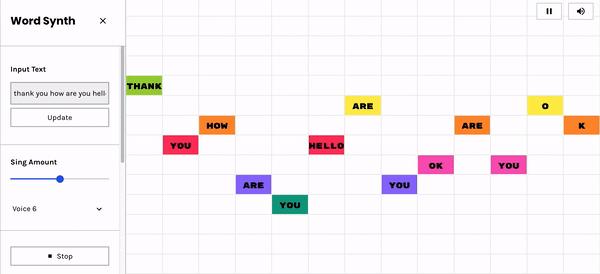 你只要输入一些单词,然后就能按照自己的喜好调节旋律,探索不同的声音、声调的组合,尝试构建鬼畜一般的歌声。
