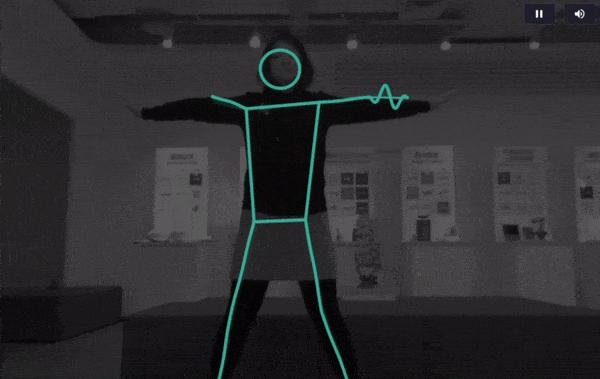其中的原理很简单,打开摄像头,自动开启人体姿态识别,四肢和脑袋分别对应不同的音调。