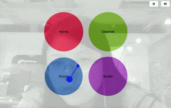 没问题,谷歌还准备了“用脸当DJ”的Sampler项目,包含鼓点、吉他、号角、古钢琴四段简短的音乐,只要用脸控制小圆点移动上去,就开始自动播放。